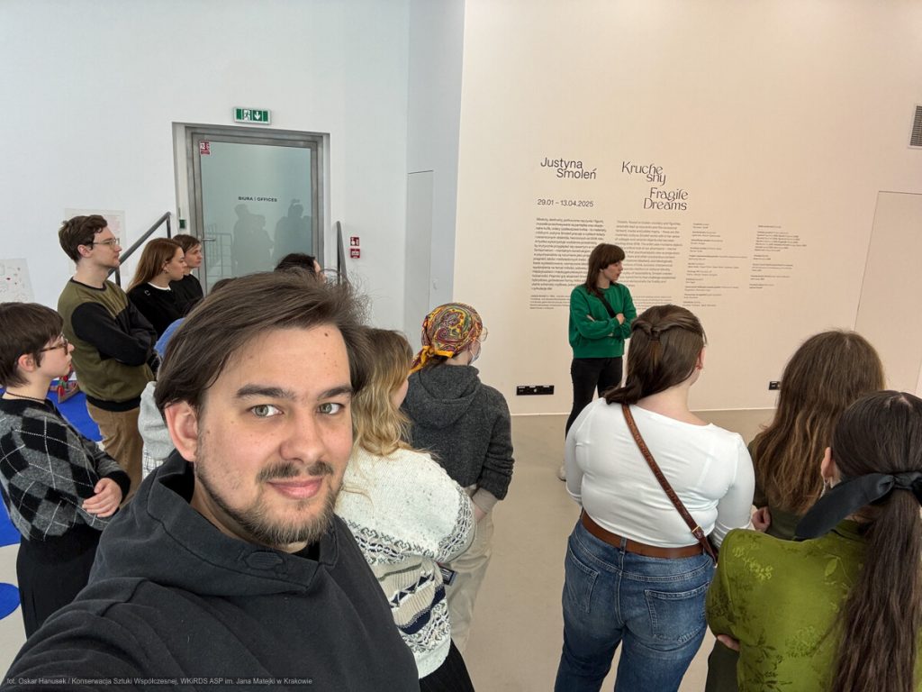 Tydzień temu odwiedziliśmy wystawę Justyny Smoleń pt. Kruche Sny. Wizyta studyjna w Bunkrze Sztuki, zorganizowana w ramach zajęć Pracowni Konserwacji Sztuki Współczesnej pod kierunkiem dr Kingi Olesiejuk i Oskara Hanuska, obejmowała spotkanie studentek i studentów z artystką oraz autorskie oprowadzanie po ekspozycji.