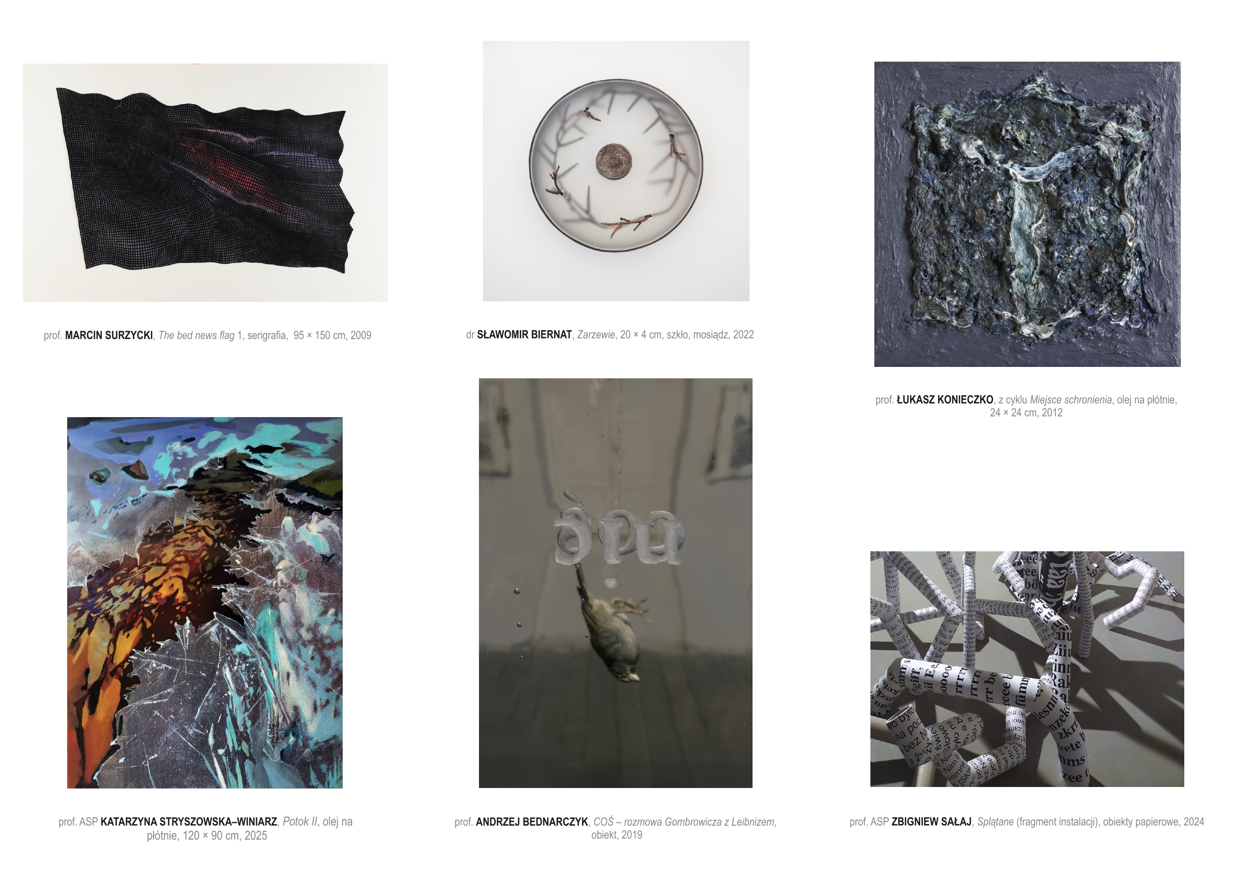 Na wystawie będzie można zobaczyć prace przedstawicieli naszej Katedry Sztuk Pięknych: prof. Łukasza Konieczki i dr hab. Rafała Pytla, prof. ASP.