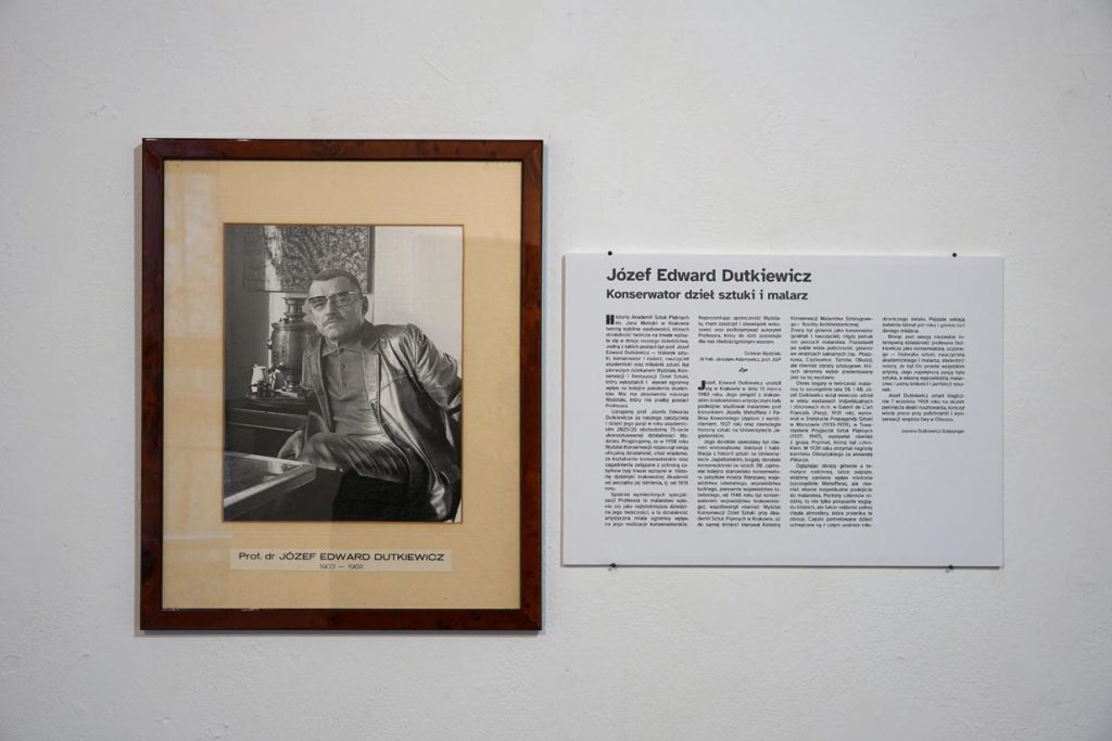 Wystawę otworzył Dziekan WKiRDS dr hab. Jarosław Adamowicz oraz Joanna Dutkiewicz-Szlezynger, córka prof. Józefa E. Dutkiewicza. Na ręce której składamy serdeczne podziękowania dla Rodziny Profesora za obecność na wernisażu oraz użyczenie obrazów na czas wystawy. Dzięki temu siedem prac wybitnego Pedagoga i konserwatora dzieł sztuki będzie mogło towarzyszyć studentkom i studentom przez równo miesiąc.