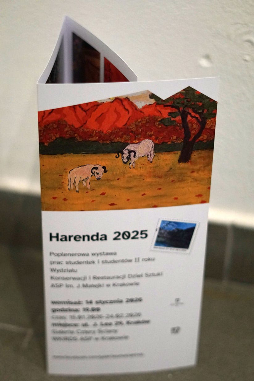 W galerii Cztery Ściany w czasie stycznia i lutego można oglądać wystawę poplenerową Harenda 2025. Jest to prezentacja prac malarskich powstałych w czerwcu ubiegłego roku podczas pleneru dla studentek i studentów I roku, tradycyjnie wyjazd odbywał się w Domu Plenerowym ASP im. J. Matejki w Zakopanem.