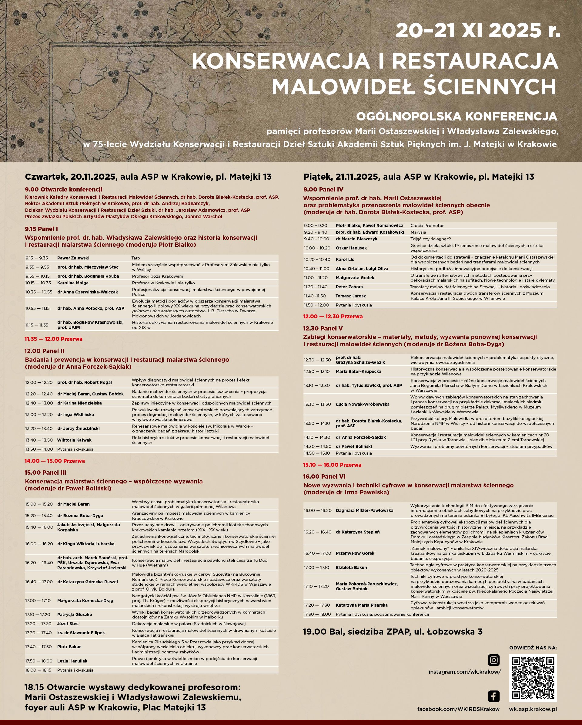 Program konferencji „Konserwacja i restauracja malowideł ściennych” 20-21 XI 2025 r.